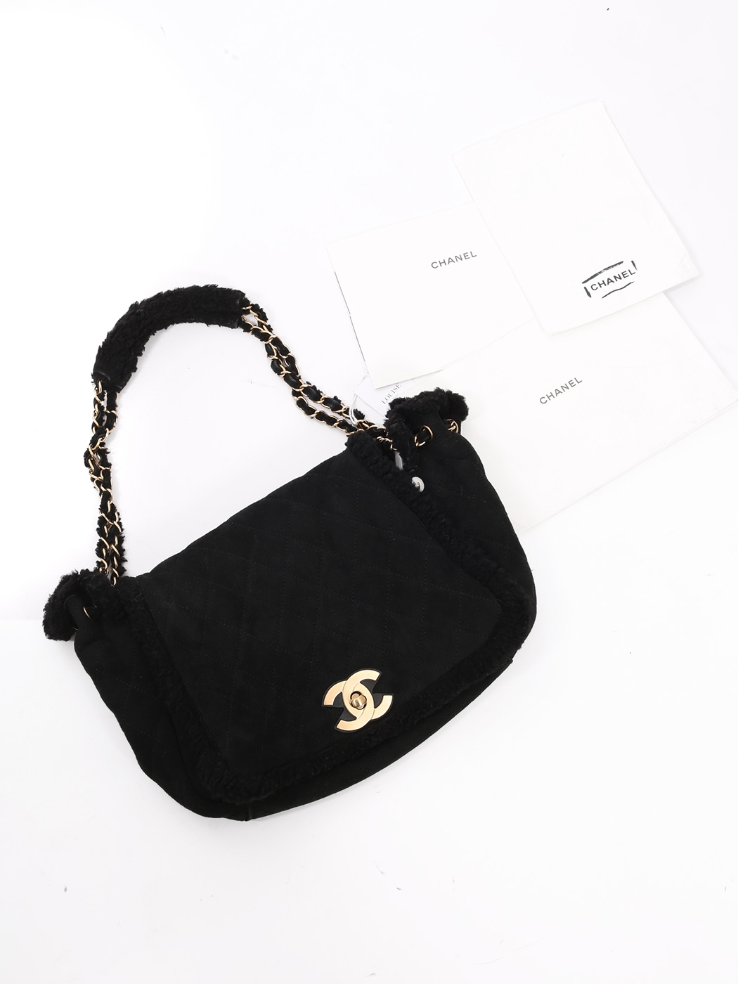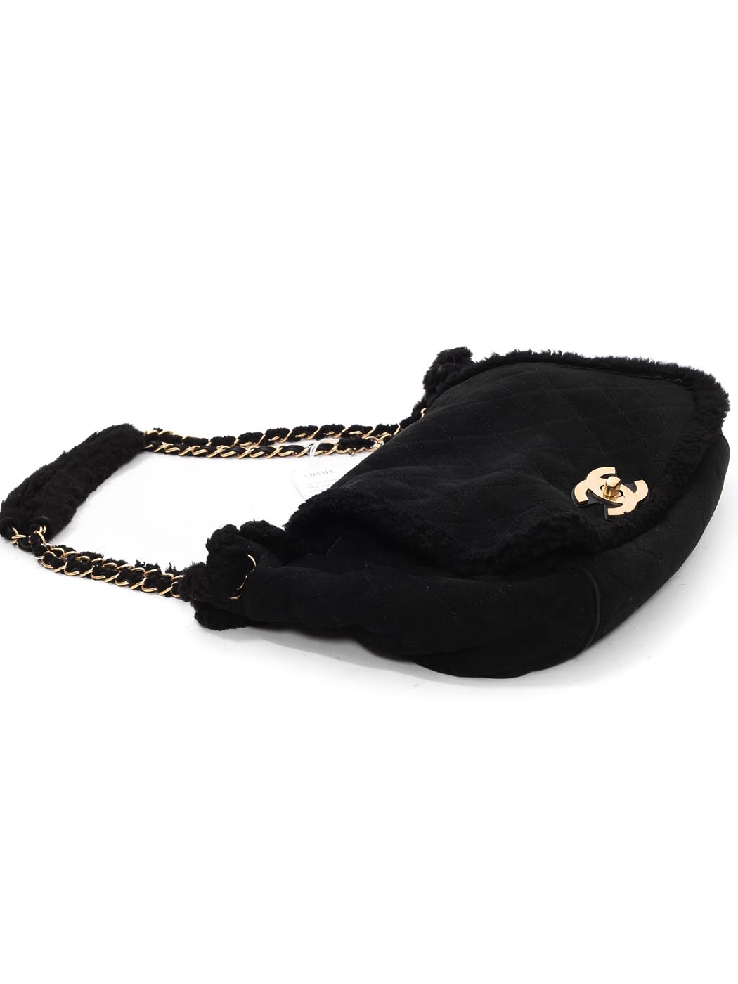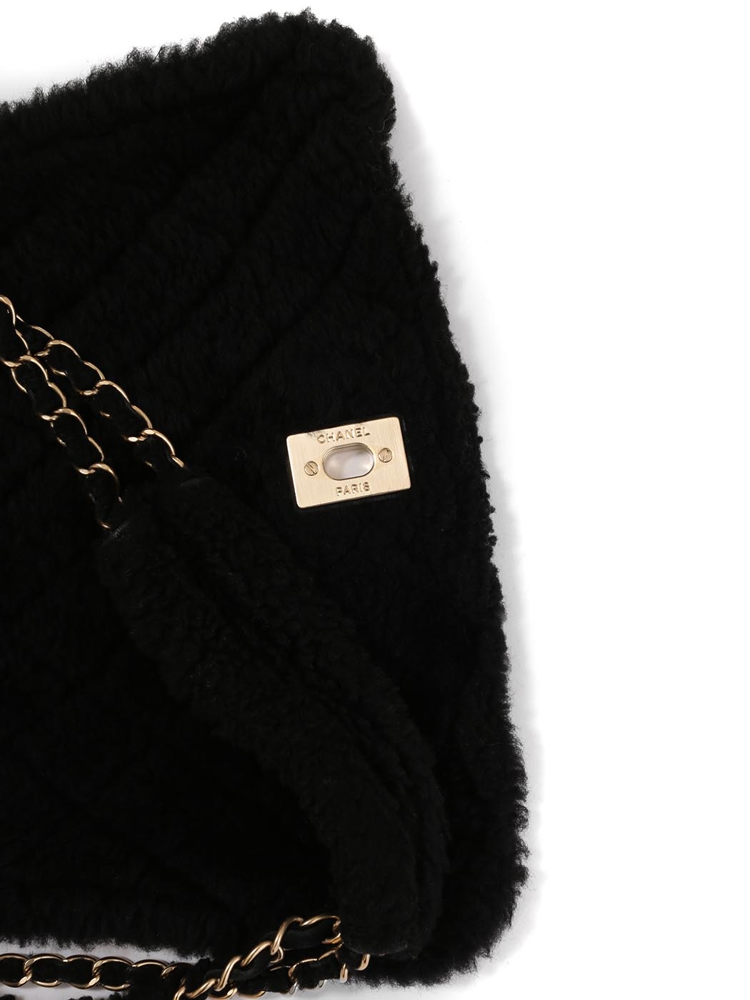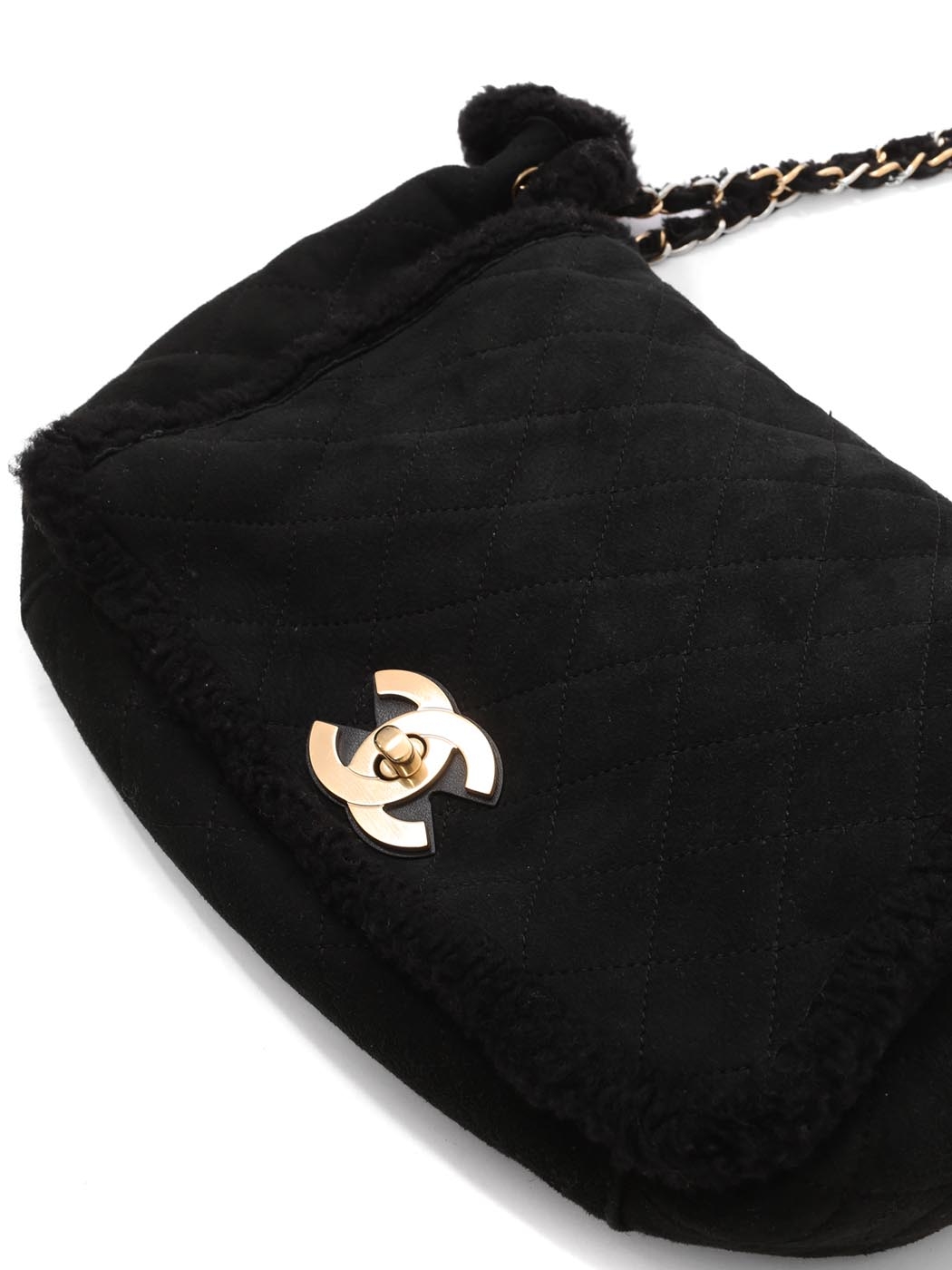 Sac en shearling daim noir peau retournée noir fermoir CC dorée Prix boutique 5850€