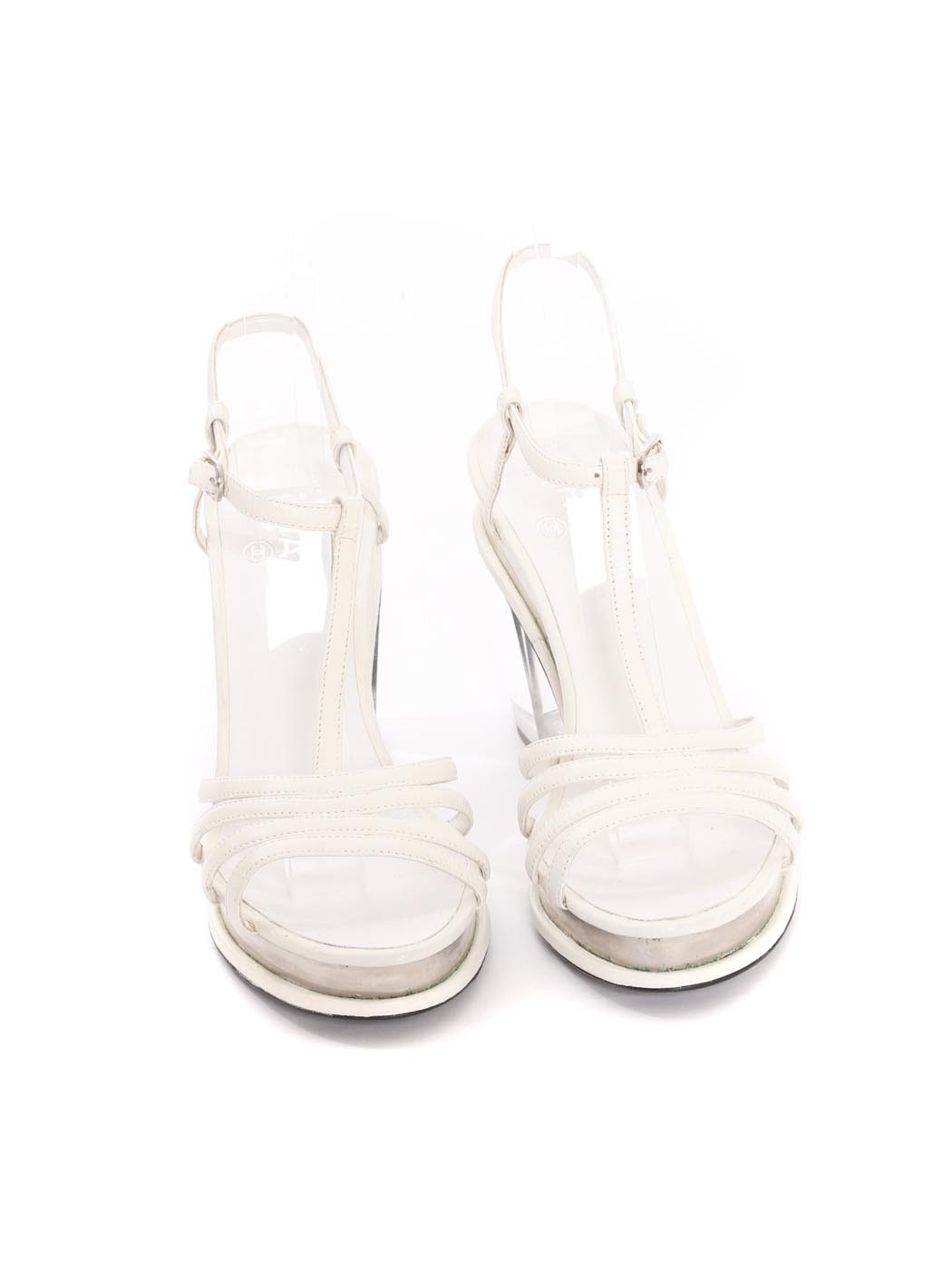 Sandales à talon en cuir blanc crème, acétate et argent Prix boutique 1200€ Taille 38