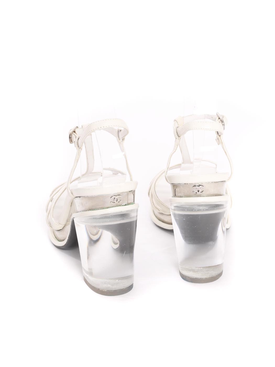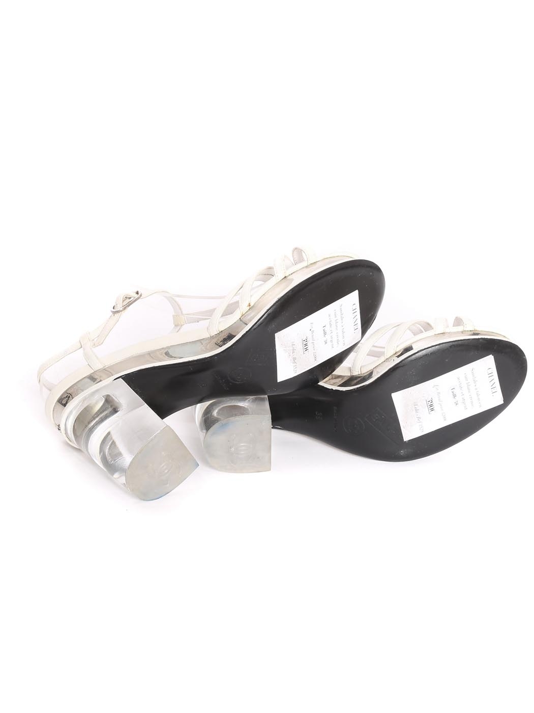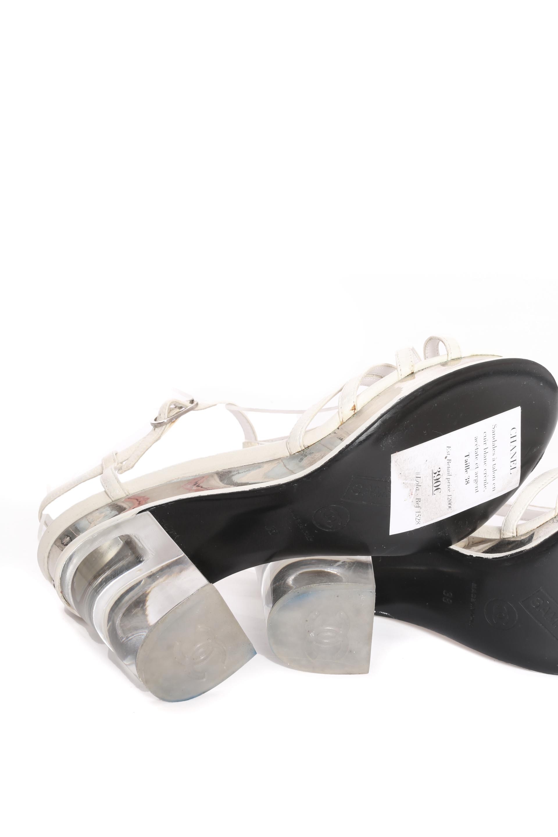 Réalisées avec la plus grande expertise en Italie dans un luxueux cuir blanc, ces divines sandales ont la gravure CC sous le talon, une signature emblématique de Chanel. Leur coupe parfaite dessine une cambrure divine. Portez ces merveilles lors de cocktails ou même la journée, elles ajouteront une touche ravissante et élégante à toutes vos tenues dans l'esprit de la Maison Chanel.