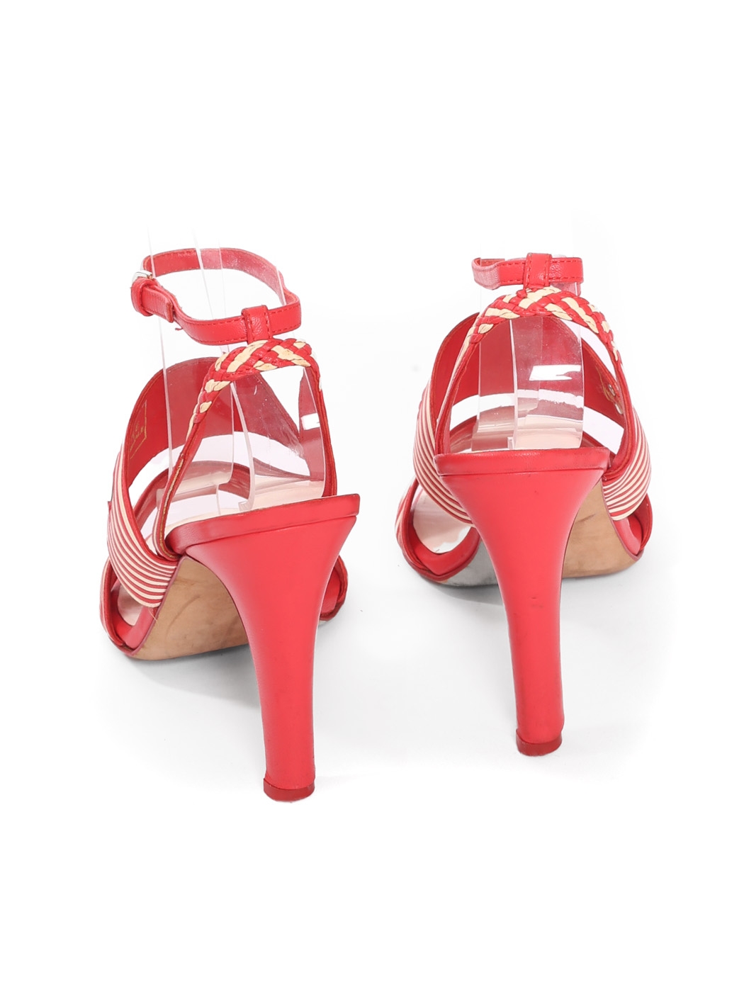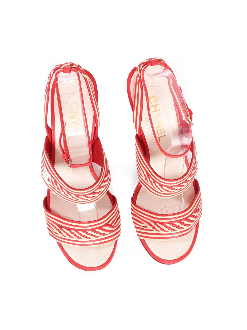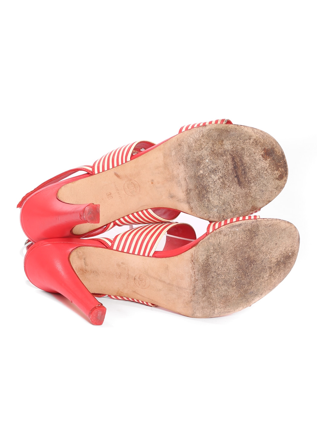 Sandales à talon en cuir rouge à rayures blanc crème Croisière 2020/2021 Prix boutique 950€ Taille 38