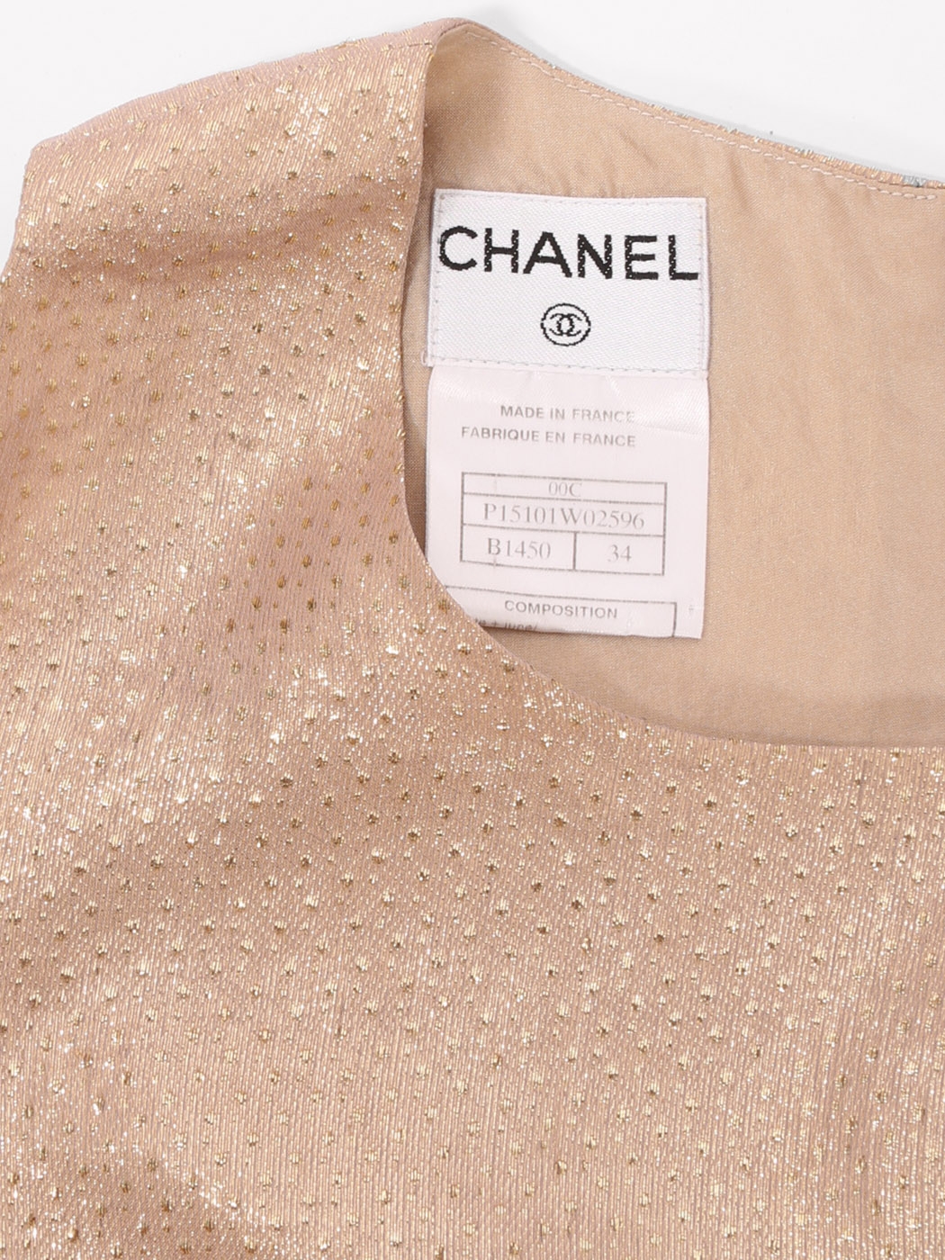 Top sans manche en soie beige rosé à pois doré Prix boutique 1400€ Taille 34