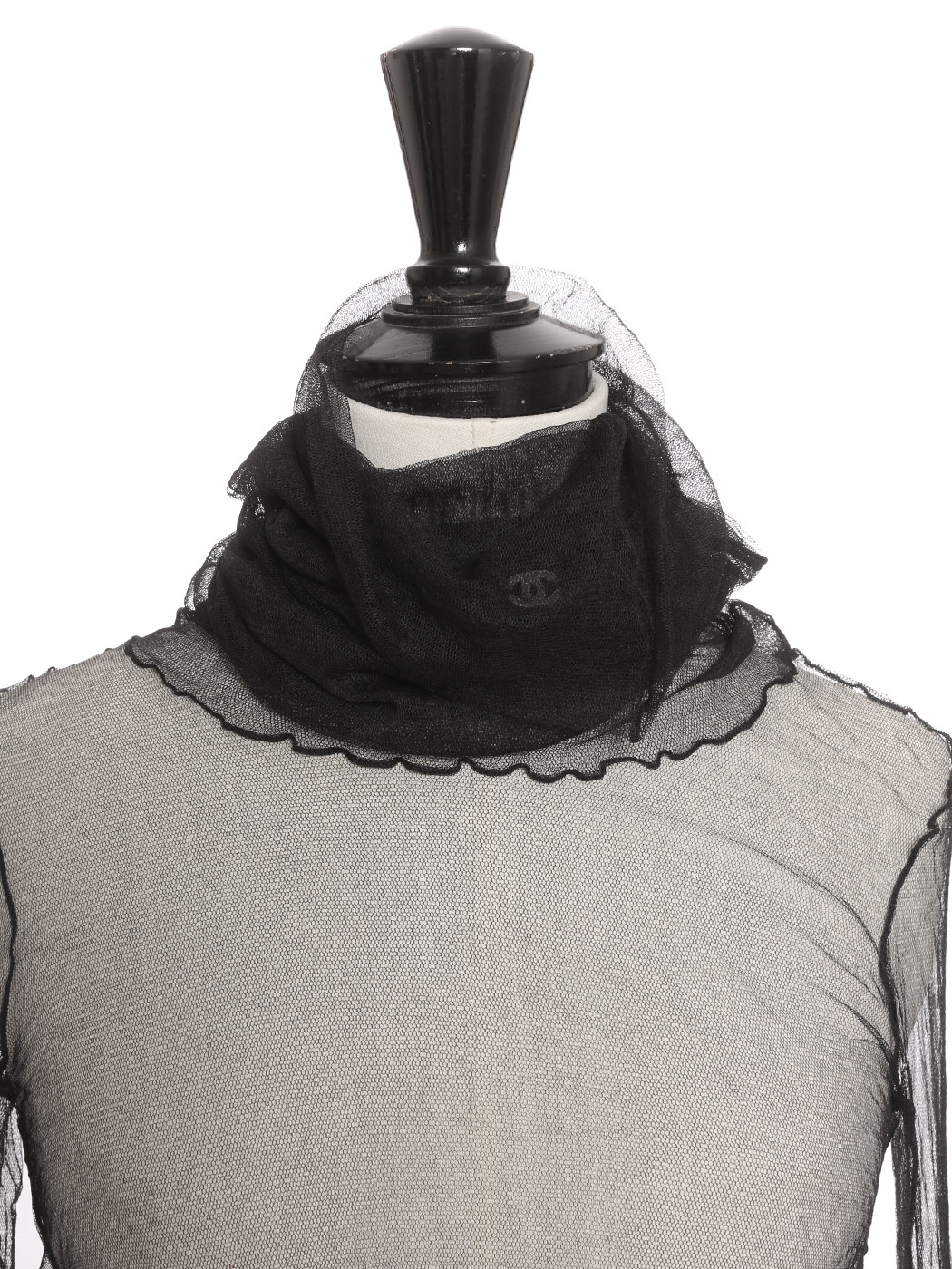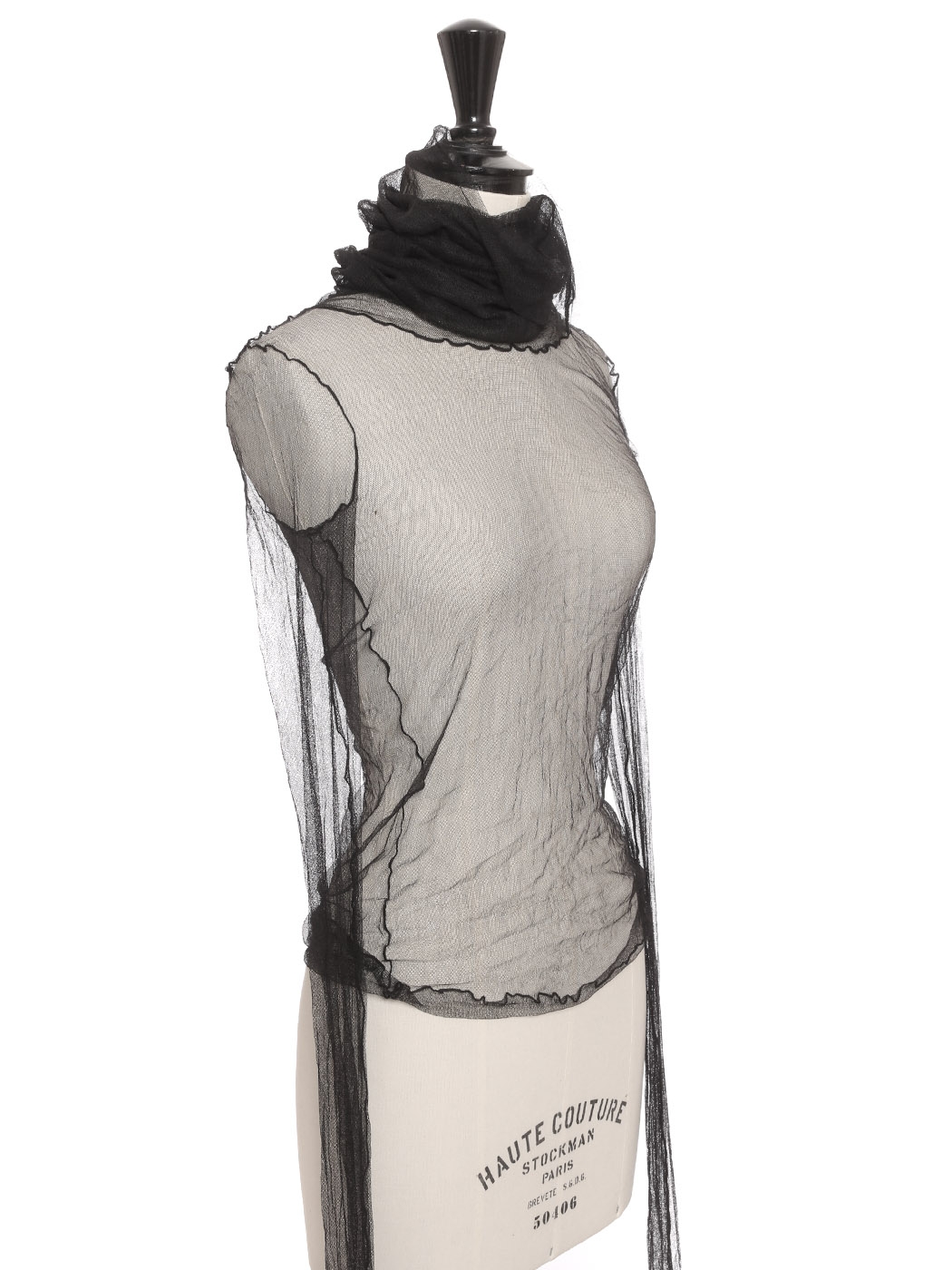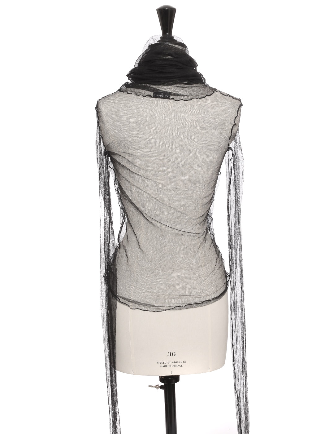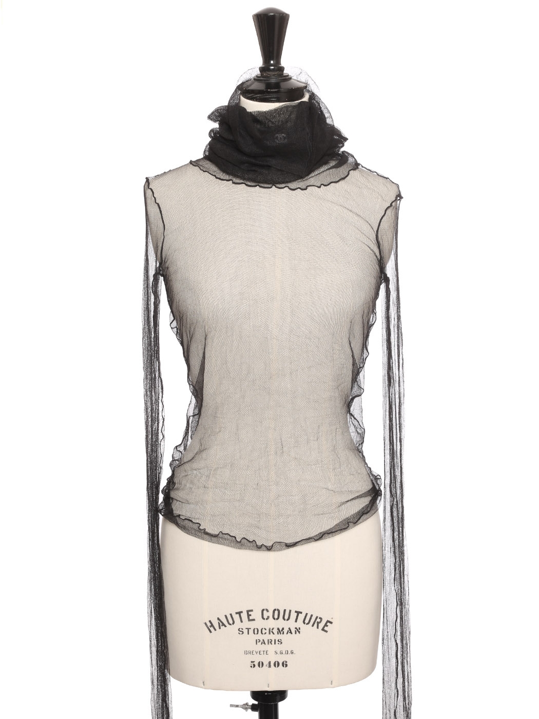 Top manches longues col roulé en tulle de soie noir Prix boutique 2000€ Taille XS