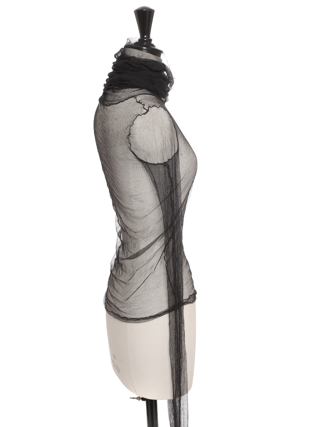 Conçue dans un luxueux tulle de soie doux et légèrement stretch, ce top est une merveille de délicatesse et de sensualité. Il révèle la peau par jeux de transparence, et moule les courbes féminines pour dessiner une silhouette sculpturale.