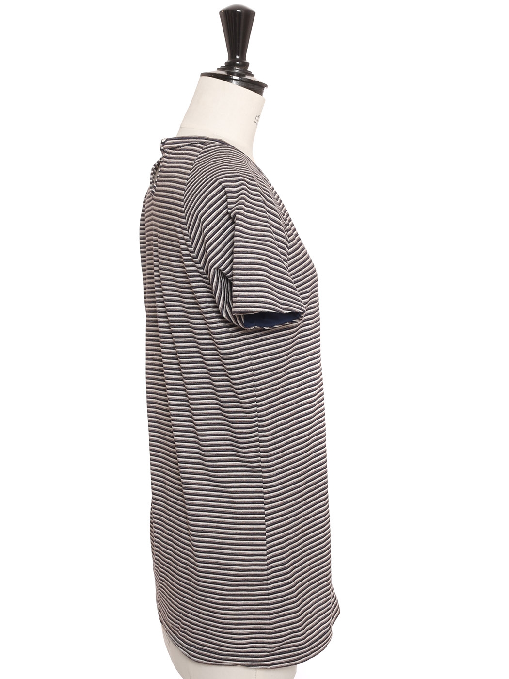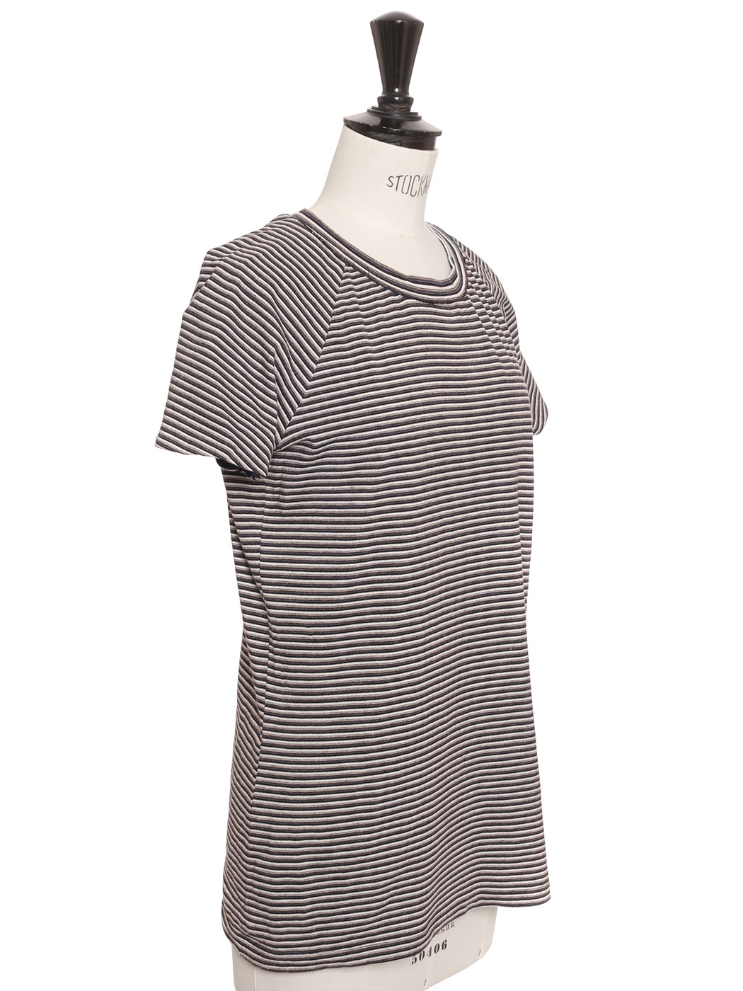 T-shirt manches courtes en coton à rayures bleu, beige blanc noir Prix boutique 900€ Taille 38